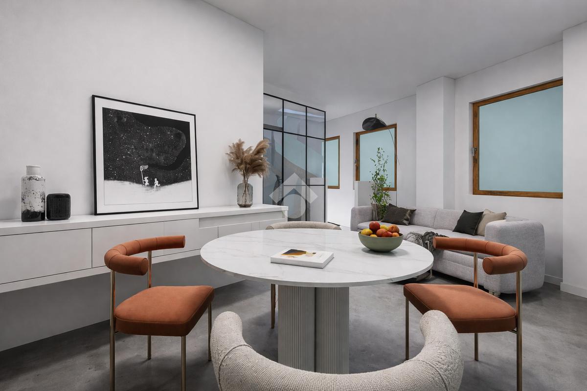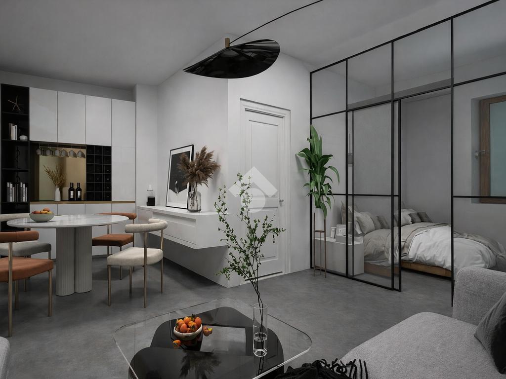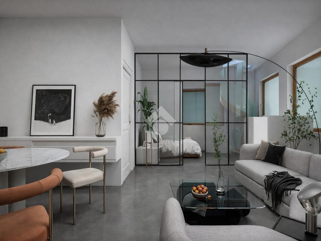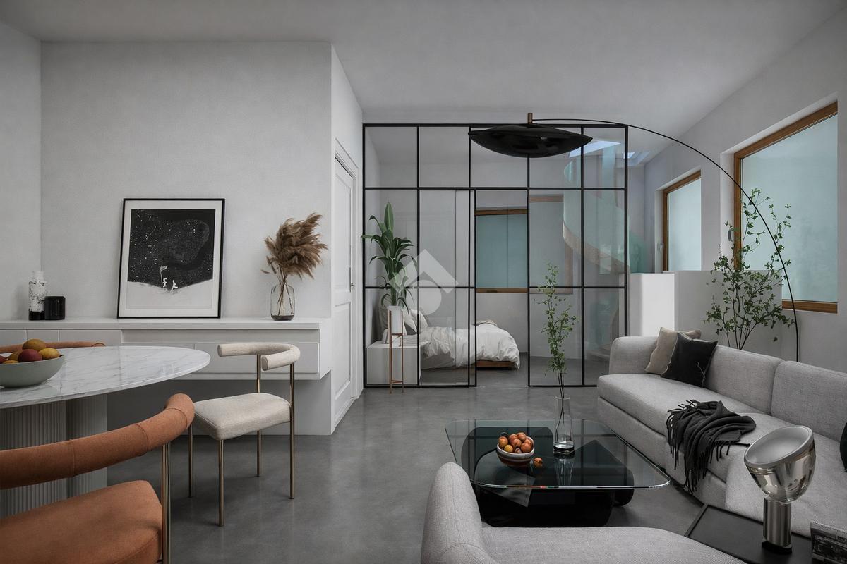 - Ampio loft openspace, arricchito da una grande parete vetrata che dona luminosità e crea un'atmosfera accogliente e conviviale.